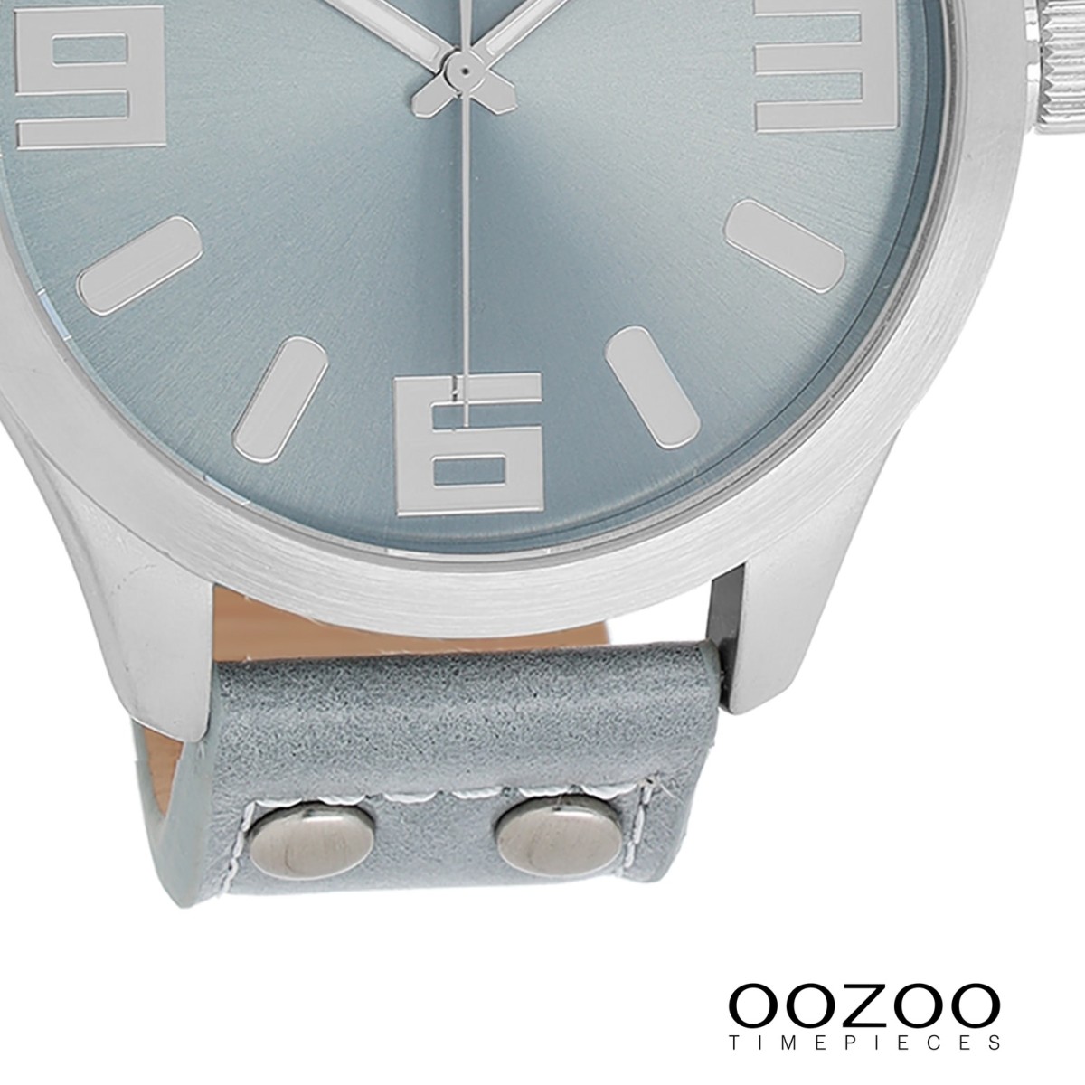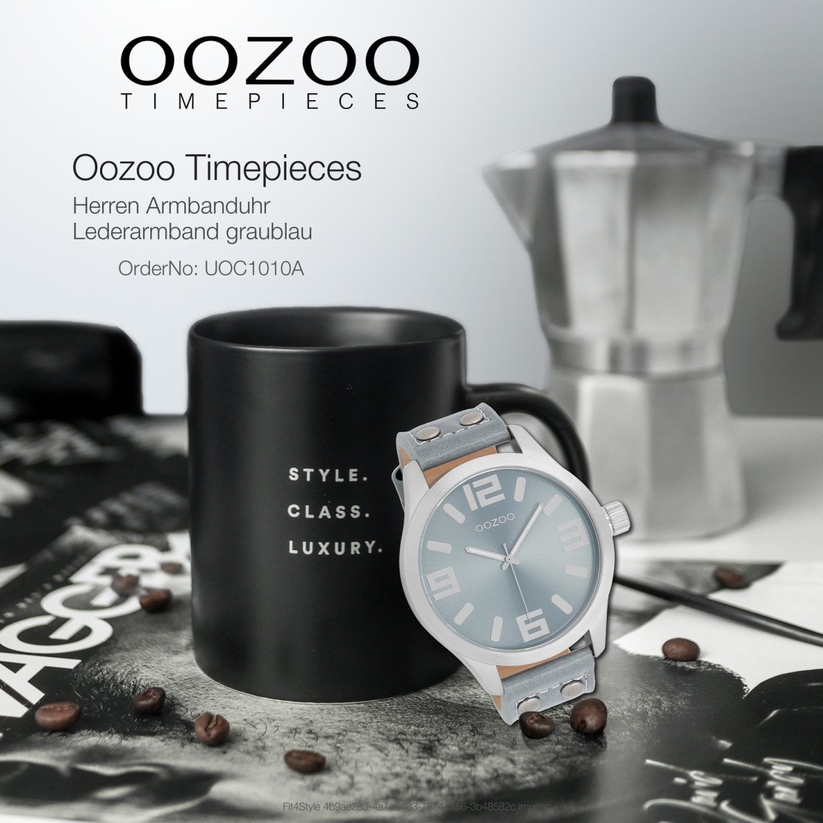 Diese Fashion Uhr für Herren aus der exklusiven Oozoo Oozoo Timepieces-Kollektion verfügt über ein hochwertiges Leder-Armband in graublau. Das Gehäuse der Uhr ist extra groß (ca. 51mm). Das analoge Uhrwerk und das Uhrenglas aus Mineralglas machen diese Armbanduhr zu einem hochwertigen und modischen Begleiter.- besondere Eigenschaften
