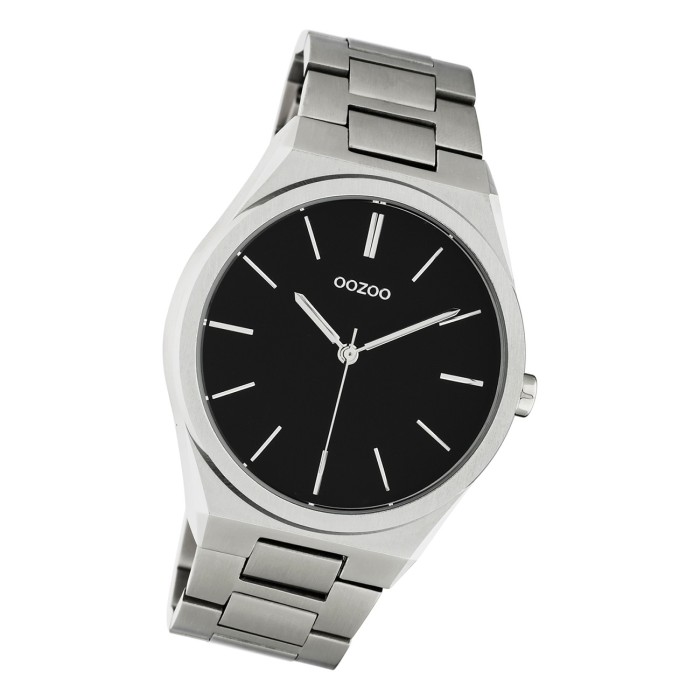 Diese Fashion Uhr für Herren, Damen aus der exklusiven Oozoo Timepieces-Kollektion verfügt über ein hochwertiges Edelstahl-Armband in silber. Das analoge Quarzwerk und die Wasserdichte bis 3 bar machen diese Armbanduhr zu einem besonders zuverlässigen Begleiter.- Besonderheiten: