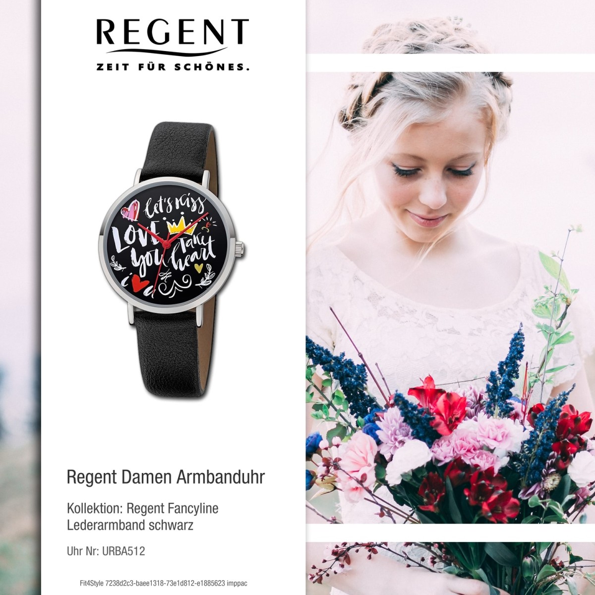 Diese Fashion Uhr für Damen aus der exklusiven Regent Fancyline-Kollektion verfügt über ein hochwertiges Leder-Armband in schwarz. Das analoge Quarzwerk und die Wasserdichte bis 3 bar machen diese Armbanduhr zu einem besonders zuverlässigen Begleiter.- Besonderheiten: