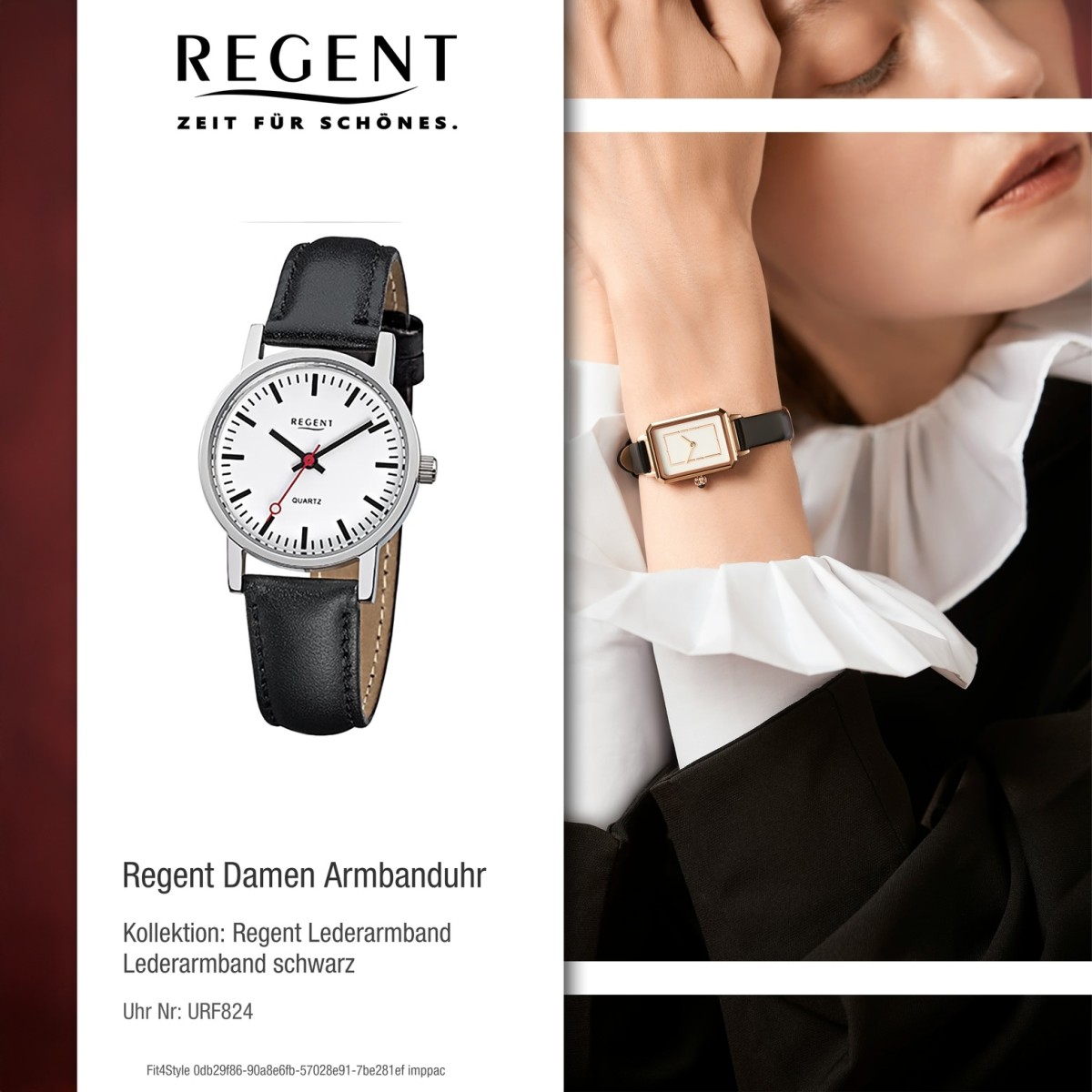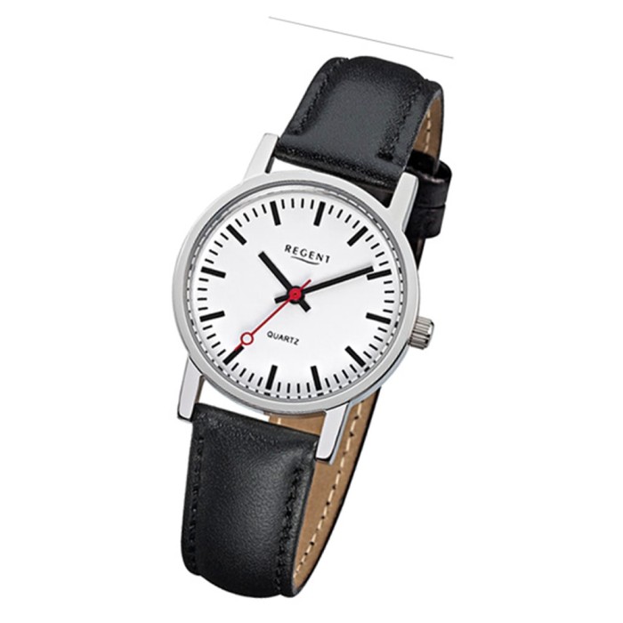 - Kurzbeschreibung: Regent Damen-Armbanduhr Edelstahl Leder schwarz Mineralglas Quarz URF824