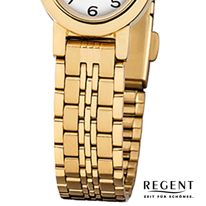 Diese schöne Uhr für Damen aus der aktuellen Regent Kollektion garantiert hohen Tragekomfort durch das hochwertige Stahl, ionenplattiert gold-Armband in gold. Die Armbanduhr mit analoger Anzeige und präzisem Quarzwerk ist ein zuverlässiger Begleiter in Alltag und Freizeit.- besondere Eigenschaften