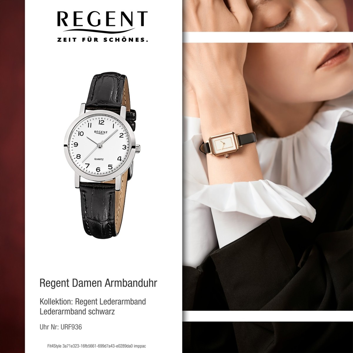 - Kurzbeschreibung: Regent Damen-Armbanduhr F-936 Quarz-Uhr Leder-Armband schwarz URF936