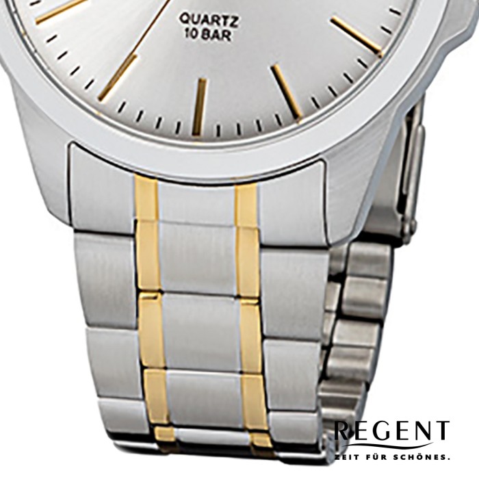 - Kurzbeschreibung: Regent Herren-Armbanduhr 32-F-1013 Quarz-Uhr Edelstahl-Armband silber gold URF1013