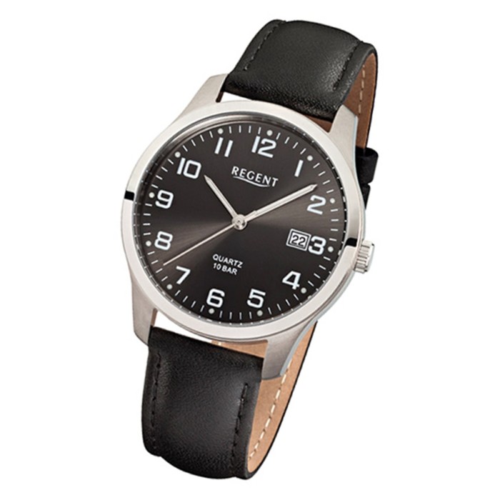- Kurzbeschreibung: Regent Herren-Armbanduhr F-932 Quarz-Uhr Leder-Armband schwarz URF932