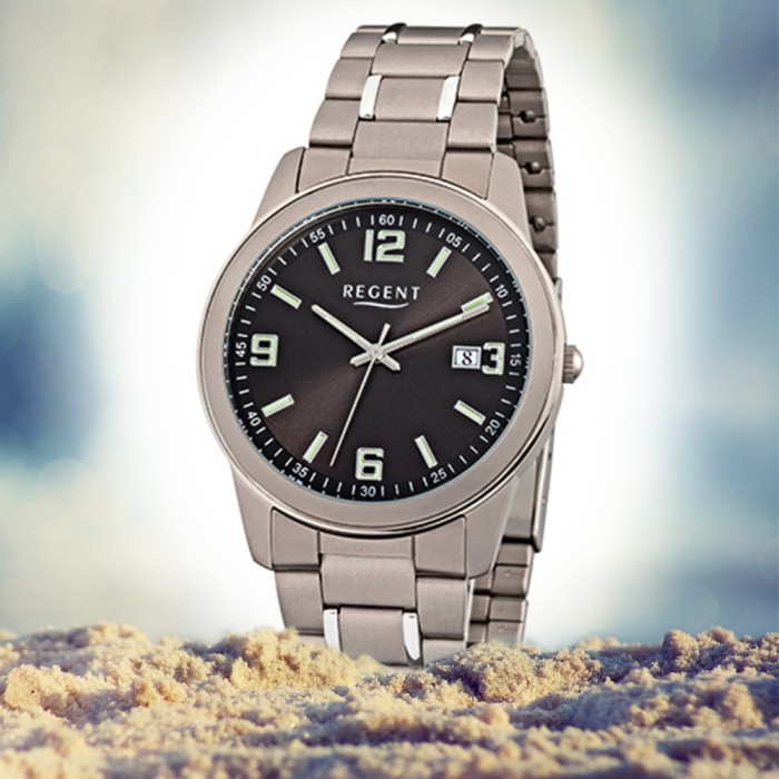 - Kurzbeschreibung: Regent Herren-Armbanduhr Mineralglas Quarz Titan silber grau URF841