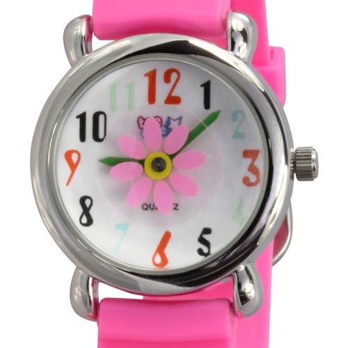 - Kurzbeschreibung: Teenie-Weenie Kinderuhr pink Blümchen 3D Kautschukband UW350P